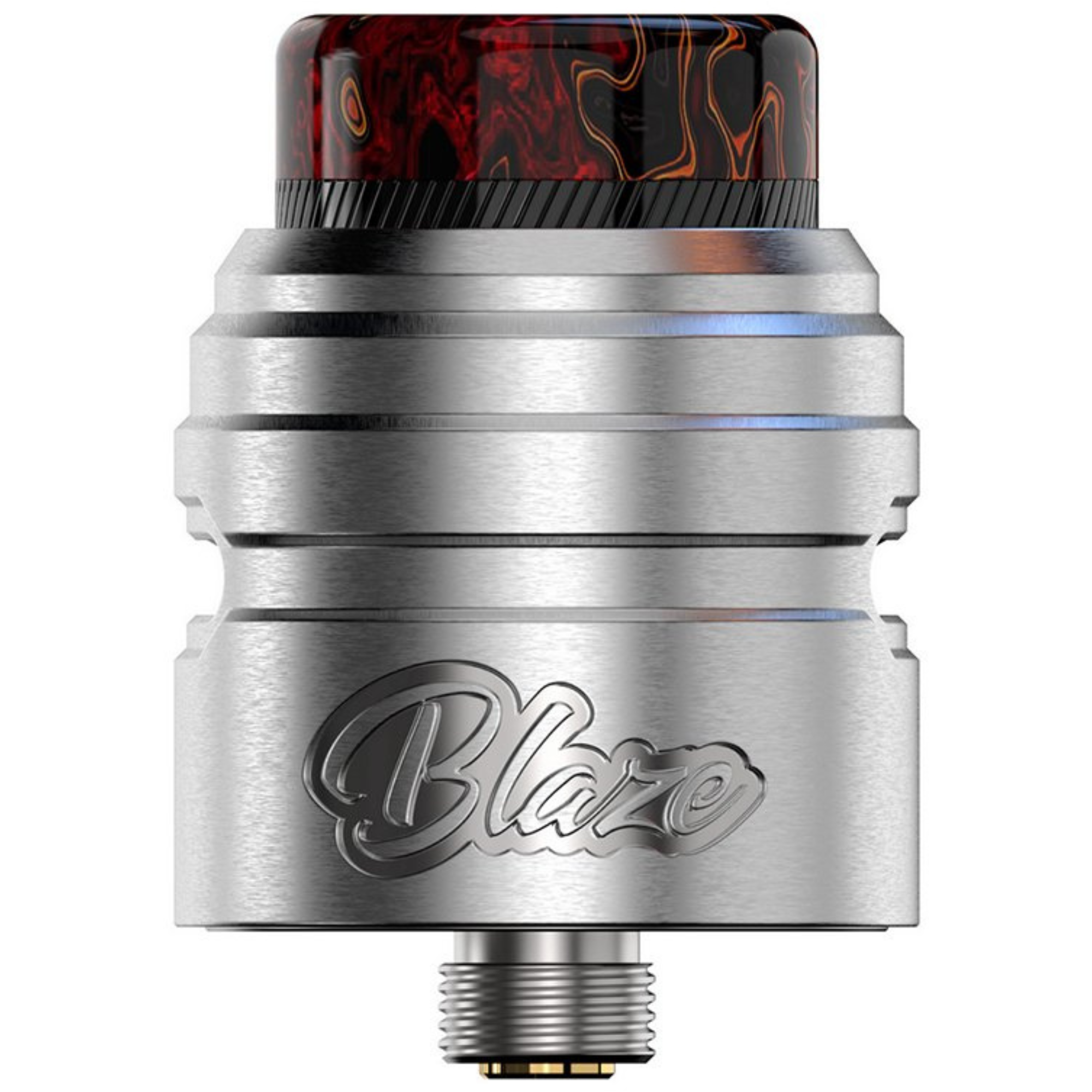 Blaze Solo RDA da ThunderHead Creations projetado por Mike Vapes com o sino gravado com o nome do modelo tem um deck de construção Single Coil postless com uma curva “ Victor” As entradas de ar na lateral são inclinadas para baixo e apresentam um fluxo de ar de 315º ao redor a tampa é mais fácil de girar na lateral para ajustar o fluxo de ar, ela também possui um fluxo de ar em favo de mel de 43 orifícios para produzir um vapor denso fantástico.