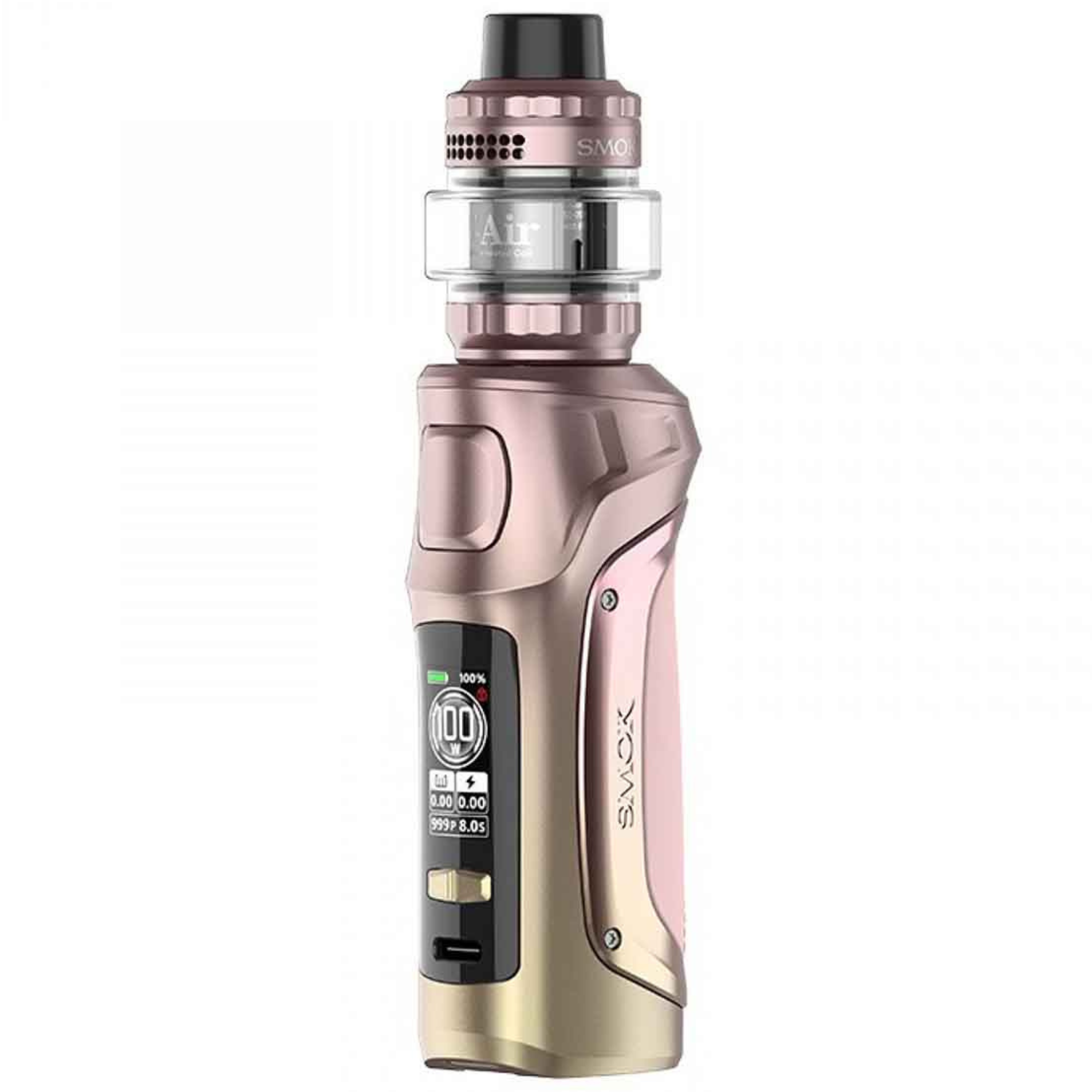 O clearomizador Smok é equipado com um tubo de enchimento superior, fluxo de ar ajustável e pode acomodar bobinas Mesh TA . Este mod eletrônico com ergonomia perfeita pode receber uma bateria no formato 18650 ou 21700. (Não incluído)