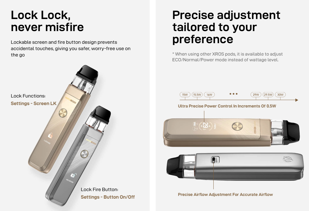 Compatível com todos os pods XROS , agora aprimorados com a tecnologia COREX 3.0 e o sistema antivazamento SSS Tech.